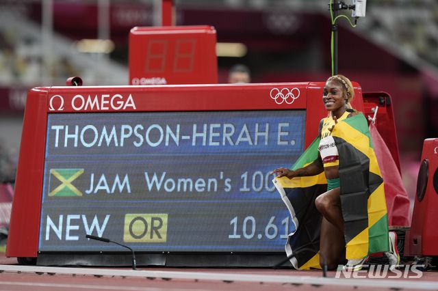 [도쿄=AP/뉴시스]도쿄올림픽 육상 여자 100m 우승자 자메이카 일레인 톰슨-헤라. 2021.07.31. |