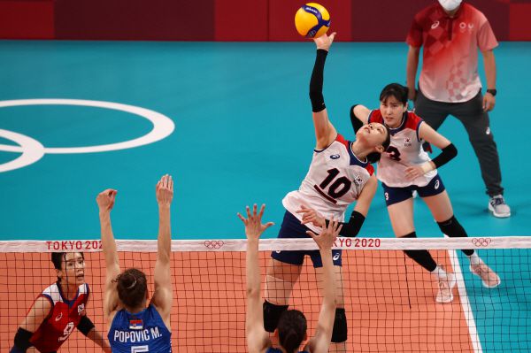 2020 도쿄올림픽에 출전한 한국 여자배구 대표팀이 세르비아와 조별리그 마지막 경기에서 0-3으로 패했다. 이로써 한국은 A조 3위로 8강에 진출하게 됐다.