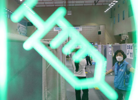 코로나19 서울시 동작구 예방접종센터가 마련된 동작구민체육센터에서 시민들이 접종실에 들어서고 있다. [연합뉴스]