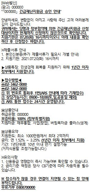 "8월 이후 재난지원금 대출 사기 문자 급증 우려"