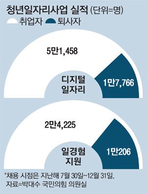 정부의 청년일자리사업은 낮은 고용 유지율 외에 운영상의 문제점도 곳곳에서 드러냈다. 청년과 기업 모두에 유의미하지 않은 특정 직군에 채용 유형이 편중돼 있는 데다 기업의 채용 여력, 인력 수요 등을 고려하지 않은 채 사업이 추진되면서 일부 사업의 목표 달성률이 50% 아래에 머물고 있다.