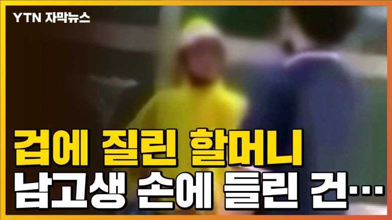 노란 우의를 입은 할머니에게 10대 남자 고등학생 한 명이 다가갑니다.