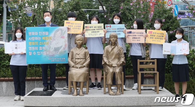성북구는 아동, 청소년 시민들과 함께 베를린 평화의소녀상 영구 존치를 위한 3천6백여통의 손편지를 전달했으며 8월31일 베를린시 미테구는 평화의소녀상 설치 기간 1년 연장을 통보했다. 2021.9.1/뉴스1