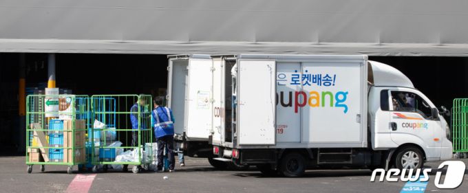 16일 오전 서울 시내의 쿠팡 캠프에서 배송 기사들이 배송준비 작업을 하고 있다. 2020.3.16/뉴스1