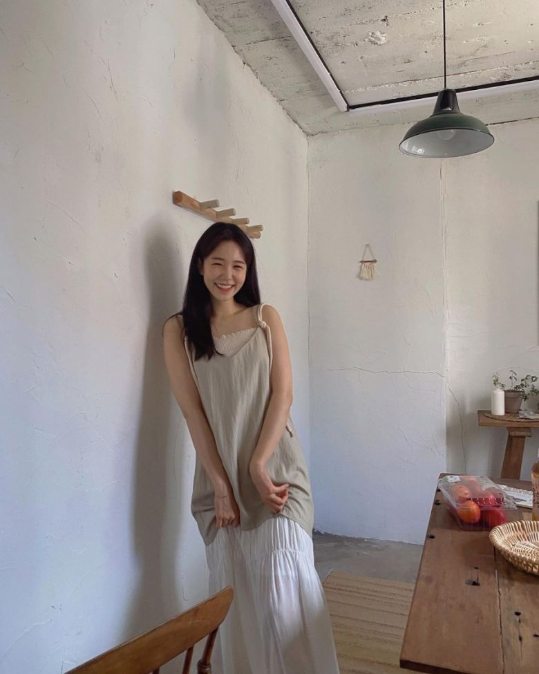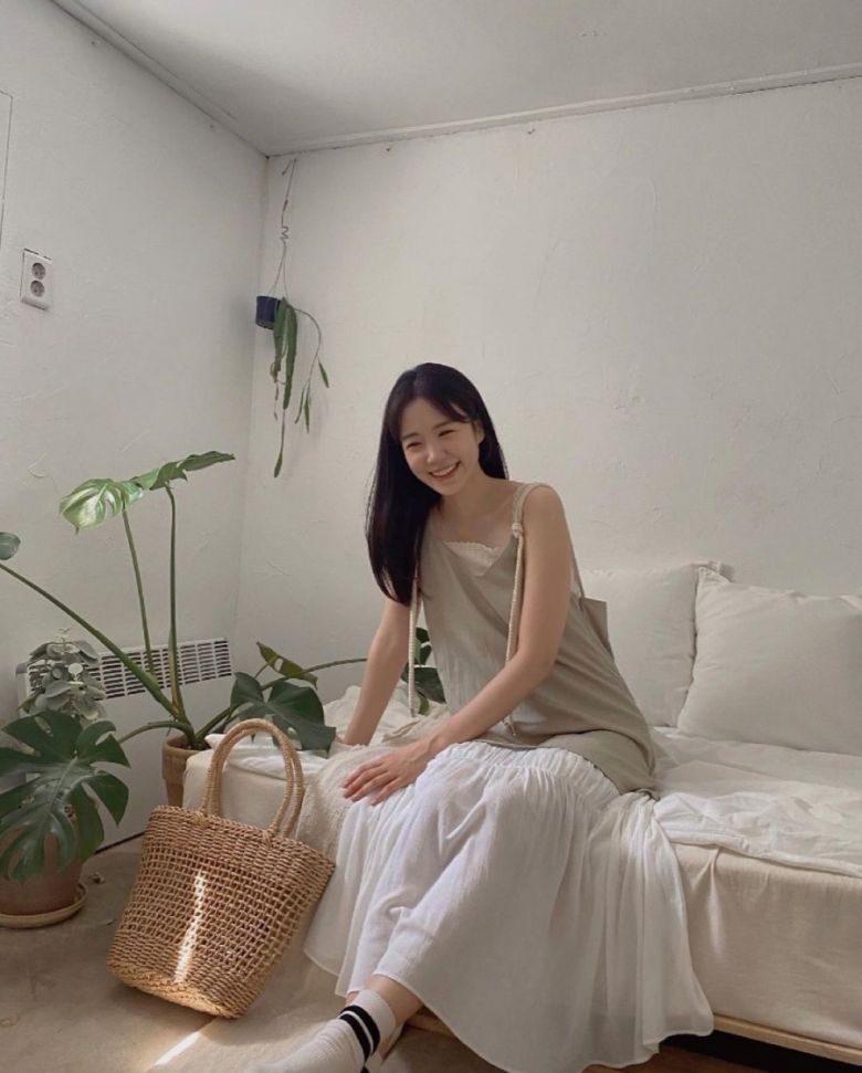 사진 속 장예원은 한 스튜디오에서 포즈를 취하고 있다. 뉴트럴 계열의 긴 원피스를 입고 수줍은 듯 웃고 있다. 트레이드 마크인 반달 눈웃음에 가녀린 팔이 청순함을 배가시켰다.