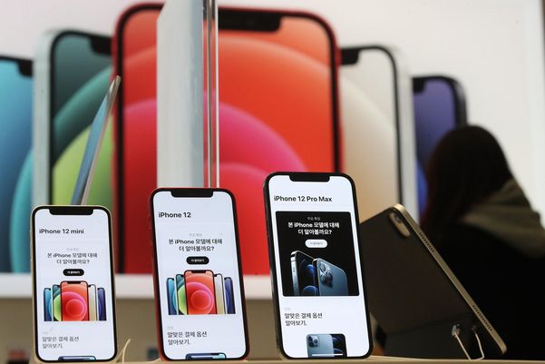 서울 중구 프리스비 명동점에 진열된 아이폰12 시리즈의 모습. /연합뉴스 |
