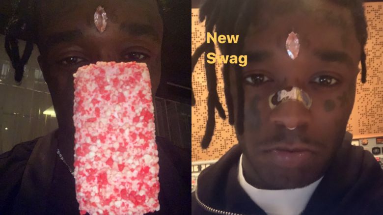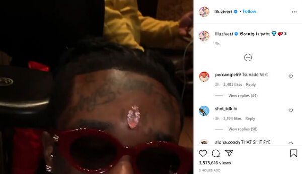▲ 인스타그램에 'Beauty is pain(아름다움은 고통)'이라는 글과 함께 이마에 다이아몬드를 이식한 모습을 공유한 릴 우지 버트