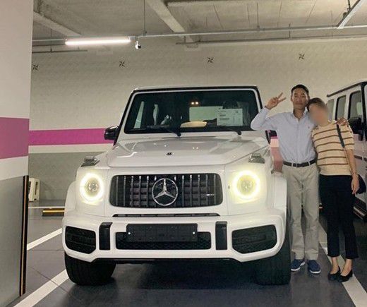 공개된 사진 속 김정환은 아내와 함께 새로 구입한 차 옆에서 포즈를 취하고 있다. 해당 차량은 2억원 가량인 것으로 알려졌다.