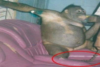 2003년 구조 당시 쇠사슬에 묶여 있는 포니의 모습 (사진=보르네오 오랑우탄 생존 재단) |