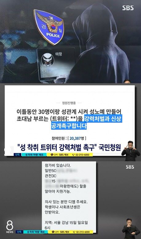 SBS 보도에 따르면 피해 여성은 미성년자를 포함해 10여 명으로 파악됐다. 박 씨는 여성에게 남성 여럿과 가학적인 성관계를 갖게 하고 촬영한 영상을 트위터 계정에 올린 것으로 전해졌다.