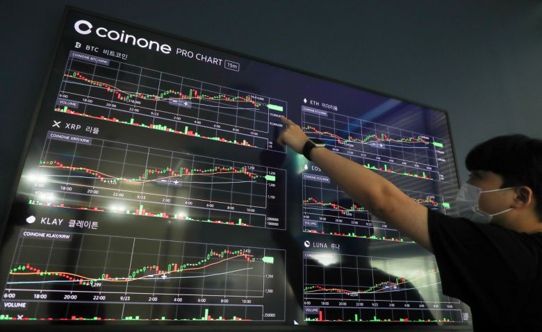 지난 23일 오전 서울 용산구 코인원 고객센터 모니터에 표시된 비트코인, 이더리움 등 가상화폐 시세 현황. [연합] |