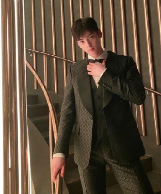 공개된 사진 속 차은우는 수트를 입고 명품 비주얼을 자랑하고 있다. 우월한 수트핏이 압도적이다.
