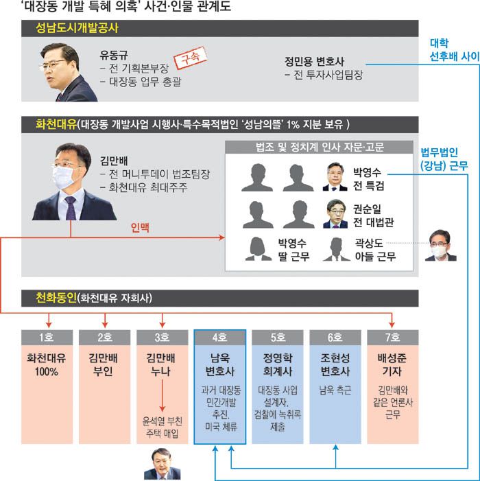 최근 대장동 논란에서 화천대유와 직간접적으로 관련돼 있는 법조계 인사들은 이때 인연을 맺은 것으로 보인다. 김씨와 그의 인맥이 대장동 사업에서 어떤 역할을 했는지가 이번 의혹의 핵심을 풀 열쇠 중 하나라는 분석이 나오는 이유다.