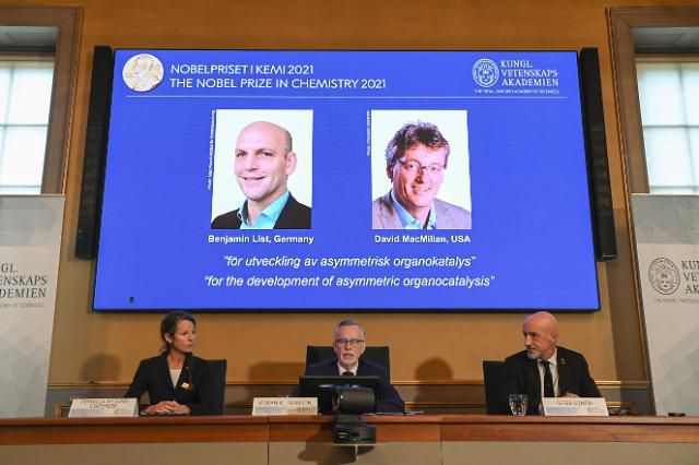 6일(현지시간) 스웨덴 왕립과학원 노벨위원회는 지난 2000년 비대칭 유기촉매 반응 기술을 개발하고 여전히 이 분야의 선구자로 평가되는 베냐민 리스트(Benjamin List), 데이비드 맥밀런(David MacMillan)을 올해 노벨 화학상 공동 수상자로 선정했다.
