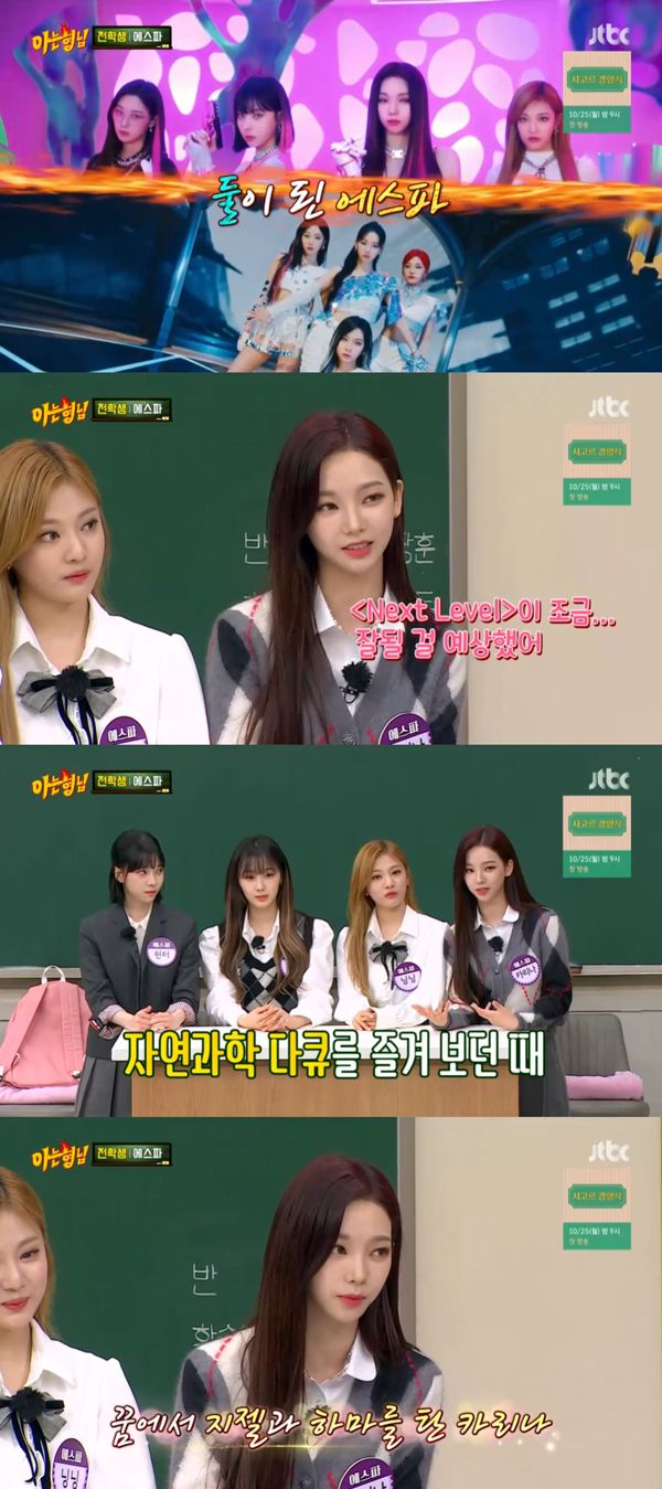에스파는 "예상 못했다 지금도 음악 방송보면 '넥스트 레벨'이랑 '새비지'가 후보더라"고 했다.