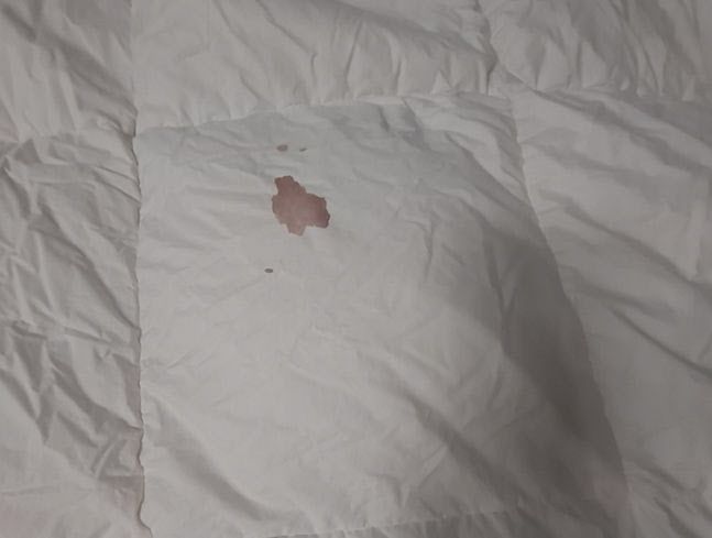 이불은 A씨의 재촉 끝에 투숙한 지 약 3주가 지나서야 도착했다. 아이의 코피를 닦은 피 묻은 수건도 같이 배송됐다. 그러나 A씨가 받은 이불을 세탁하려다 발견한 것은 이불에 남아있는 정체모를 노란 자국이었다. 그는 해당 흔적이 자신의 가족이 남긴 것이 아니라고 주장했다.