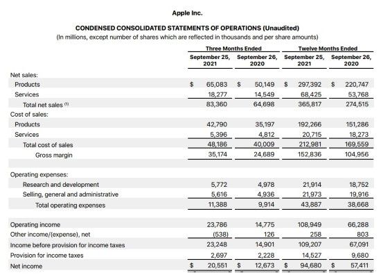 28일(현지시각) 애플은 회계연도 2021년 4분기(2021년 7~9월) 실적을 공개했다.