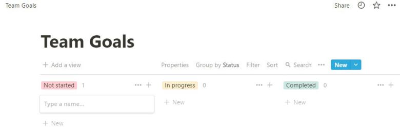 우선, 다른 새 노션 페이지를 만들고 보드로 설정한다. 그리고 저장할 것으로 예상되는 링크 유형이나 이런 링크의 목적을 나타내는 일련의 컬럼을 만든다.