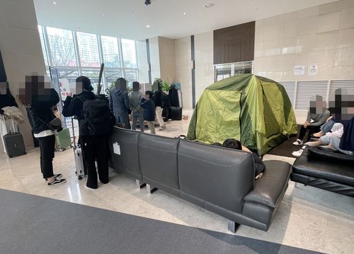 A씨는 "수십만원의 비용을 지불하고 이곳을 찾았는데 로비부터 텐트가 있어 혼란스러웠다"며 "어디서 체크인해야 하는지 안내도 잘 안 돼 머물기 전부터 기분이 좋지 않았다"고 말했다.