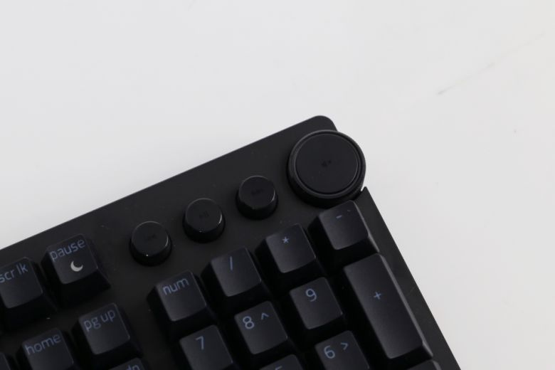 미디어 키와 디지털 다이얼은 어떨까? 미디어 키는 제법 힘을 주어야 인식되는 편이고 적절한 클릭감을 지녀 구분감이 뚜렸했다. 스트로크는 아주 얕은 편이며, 유격은 거의 없었다. 따라서 키보드 사용 중 미디어 키가 잘못 눌릴 일은 거의 없으리라 생각된다.