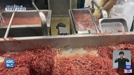 2일 KBS '9시 뉴스'는 올해 초 촬영된 A 순대 제조업체의 내부 공정 영상을 공개했다. 영상에는 공장 천장에서 떨어지는 물이 순대 속에 들어가는 양념 당면과 섞이는 모습이 담겼다. 업체 전 직원은 A씨는 KBS와의 인터뷰에서 "(천장에서 떨어지는 물은) 꽝꽝 얼었던 배관인가 어딘가가 녹아서 떨어지는 것"이라고 설명했다.