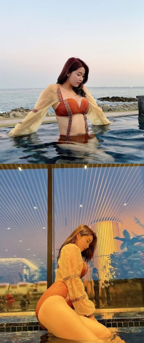 공개된 사진 속 오또맘은 주황색 비키니를 입고 섹시하게 포즈를 취하고 있다.