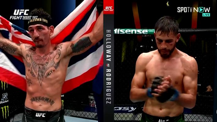 페더급 랭킹 1위 할로웨이는 14일(한국 시간) 미국 네바다주 라스베이거스 UFC 에이펙스에서 열린 UFC 파이트 나이트 197 메인 이벤트 경기에서 랭킹 3위 야이르 로드리게스(29, 맥시코)에게 5라운드 25분 경기 끝에 3 대 0 심판 전원일치 판정승을 거뒀다.