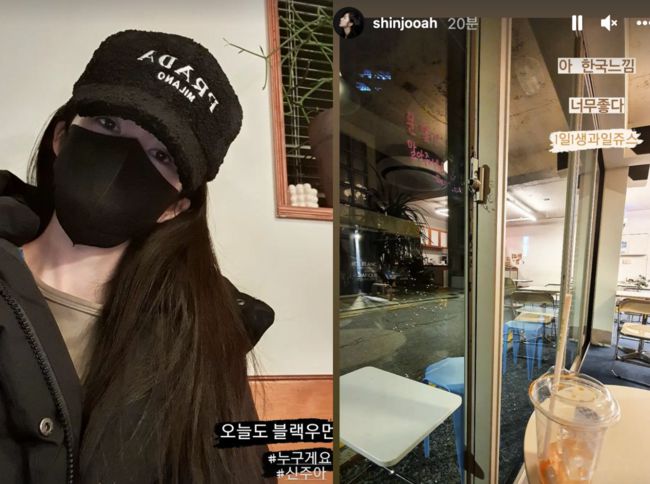 공개된 사진 속 신주아는 "아 한국 느낌 너무좋다"라면서 "1일 1 생과일주스"란 멘트를 덧붙이며 여유로운 한국일상을 전했다. 이어 같은 날 그는 "오늘도 블랙 우먼, 누구게요 신주아"란 멘트를 덧붙이며 올 블랙으로 중무장한 패션으로 카메라를 응시하고 있다.