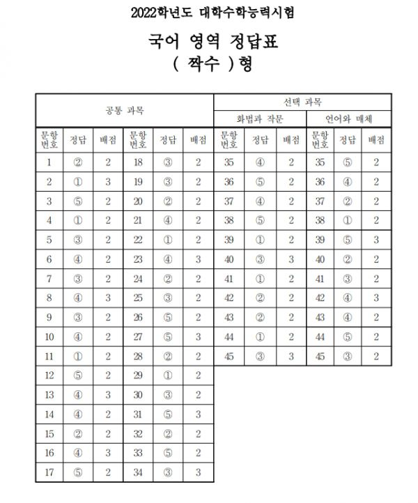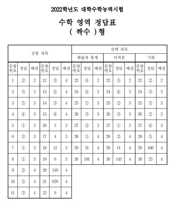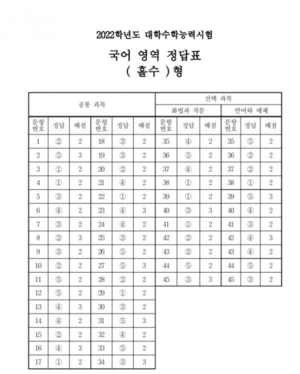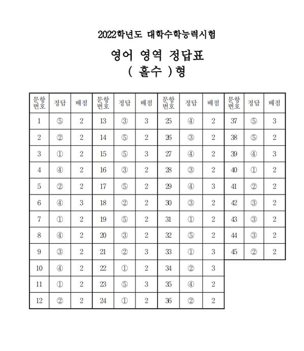 [종합]2022 수능 국어·수학·영어 정답·답지·예상 등급컷 '한 눈에'