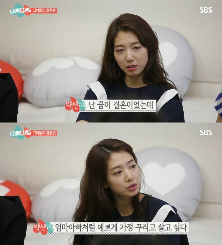 당시 박신혜는 "결혼이 목표가 되면 안 된다"는 조언에 "난 꿈이 결혼이었다. 엄마, 아빠 두 분이 계시는 모습을 보면서 나도 예쁘게 가정을 꾸리고 싶다는 생각을 했다. 난 내가 23살에 결혼할 줄 알았다"고 자신의 부모처럼 화목한 가정을 꾸리고 싶었다는 소중한 꿈을 밝혔다.