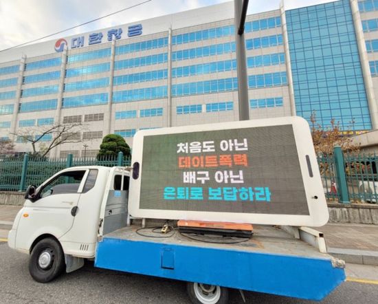 (엑스포츠뉴스 박윤서 기자) 대한항공 정지석(26)의 복귀를 반대하는 프로배구 팬들이 트럭 시위를 열며 분노를 표출했다.