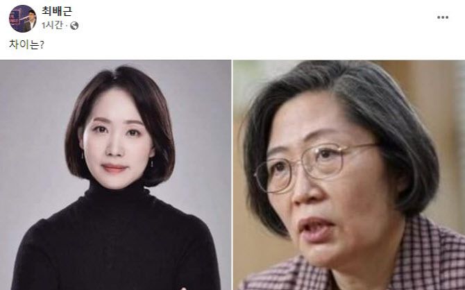 [이데일리 송혜수 기자] 이재명 더불어민주당 대선 후보 측 인사인 최배근 건국대 교수가 29일 민주당과 국민의힘 선대위원장으로 영입된 두 여성의 사진을 올리며 비교했다.
