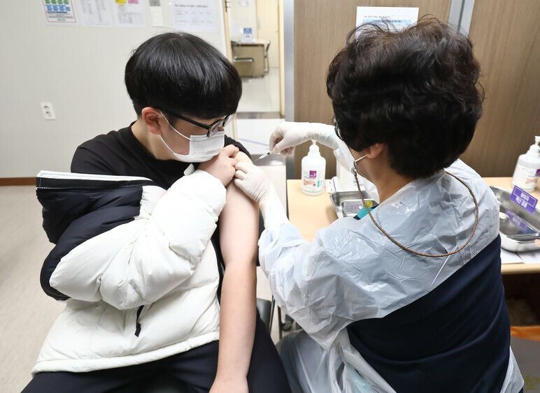 16~17살 청소년에 대한 코로나19 예방접종이 시작된 지난 10월18일 오전 서울시 양천구 홍익병원에서 한 청소년이 접종을 받고 있다. 사진공동취재단