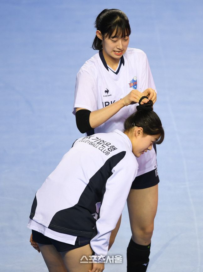 기업은행 최정민이 5일 화성종합실내체육관에서 열리는 2021~2022 V리그 여자부 IBK기업은행과 페퍼저축은행 경기 전 구혜인의 머리를 묶어주고 있다. 2021.12.5.화성 | 최승섭기자 thunder@sportsseoul.com [기사제보 news@sportsseoul.com] Copyright ⓒ 스포츠서울&sportsseoul.com이 기사의 카테고리는 언론사의 분류를 따릅니다.0공유하기