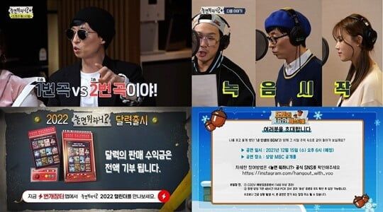오는 11일 방송에서는 토요태 데뷔곡 녹음 현장과 함께 ‘도토페’ 섭외 아티스트로 써니힐과 아이비의 등판이 예고되며 기대감을 끌어올리고 있다. ‘놀면 뭐하니?’는 2021년의 추억이 담긴 2022년 달력부터 15일 수요일 오후 6시에 열리는 ‘도토리 페스티벌’ 공연까지 다가오는 크리스마스, 연말에 풍성한 선물을 선사할 예정이다.