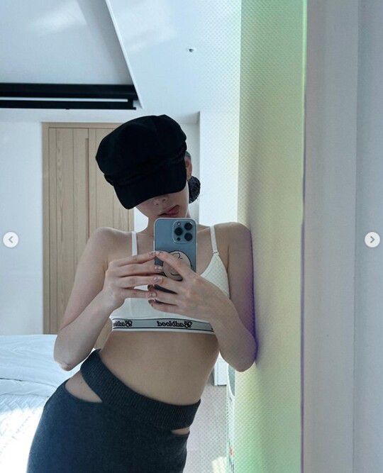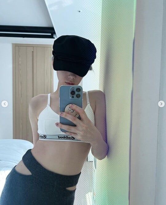 공개된 사진 속에는 브라탑과 골반 부분이 노출되는 팬츠를 입고 거울 셀카를 찍고 있는 태연의 모습이 담겼다. 특히 군살 찾아볼 수 없는 한 줌 허리가 놀라움을 자아낸다.