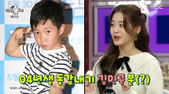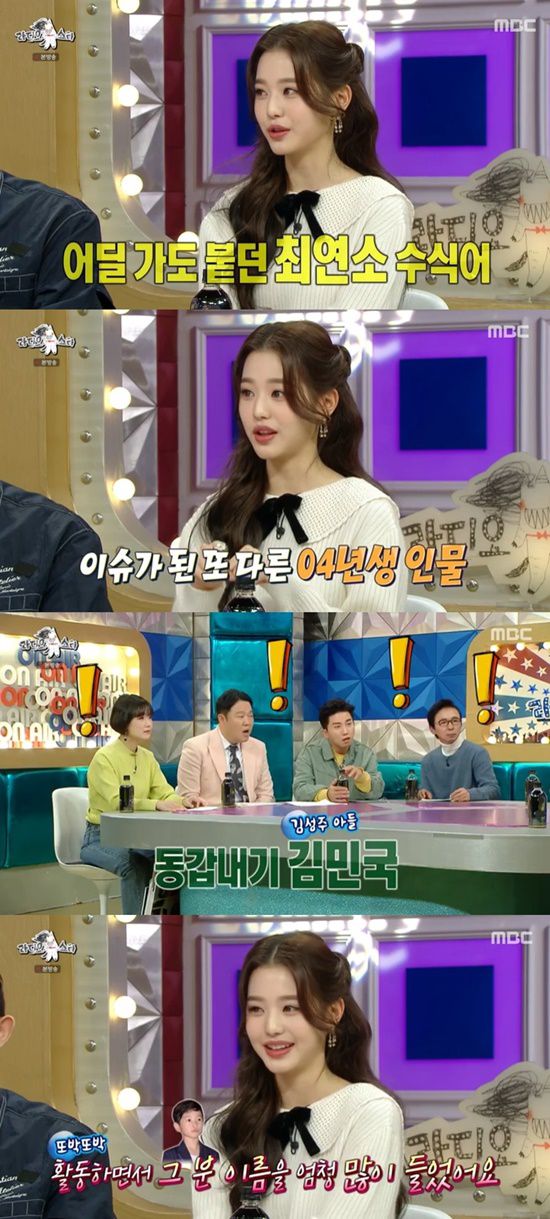 이어 "의외의 동갑내기를 알게 됐다던데"라고 묻는 MC 김구라의 말에 "'04 장원영', '최연소 장원영'으로 활동 기사가 뜨고 있는데, 다른 화제의 인물이 같이 거론되기도 하더라. 그 사람이 바로 김성주 선배님의 아들 김민국 분이었다"고 말했다.