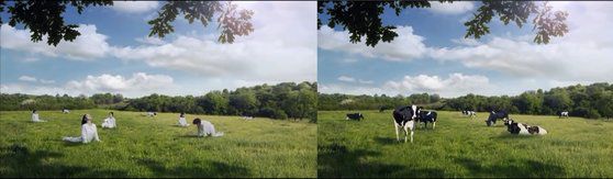 문제가 된 건 서울우유가 지난달 29일 공식 유튜브 채널에 올린 약 50초 분량의 우유 광고 영상이다. 영상은 강원도의 한 산속을 헤매는 탐험가의 모습을 비추며 시작된다. 탐험가는 산속에서 흰옷을 입은 채 이슬을 마시고 풀밭에서 요가를 하는 남녀를 발견하고, 카메라를 꺼내 사진을 찍으려 한다. 그러자 그 순간 풀밭에 누워있던 사람들이 젖소로 변했다는 내용이다.
