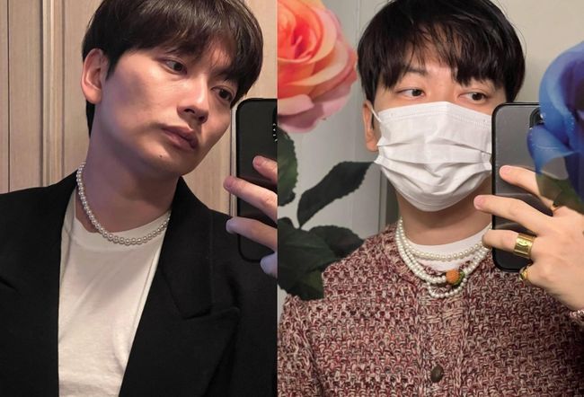 특히 사진 속 이동휘는 검은 재킷에 흰 티셔츠를 받쳐 입은 깔끔한 옷차림에 진주 목걸이를 걸고 독특한 조합으로 시선을 모았다. 또 다른 사진에서는 분홍색과 빨간색 실이 얽힌 니트 카디건에 더 화려한 레이어드 진주 목걸이를 걸어 눈길을 끌었다.