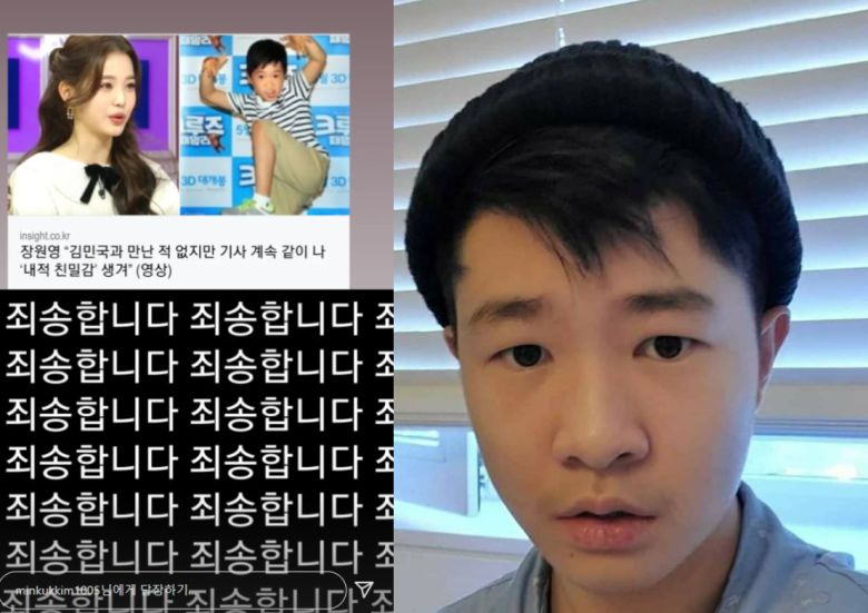 이를 접한 김민국은 장원영의 팬들을 의식한 듯 재빨리 사과해 웃음을 안겼다.
