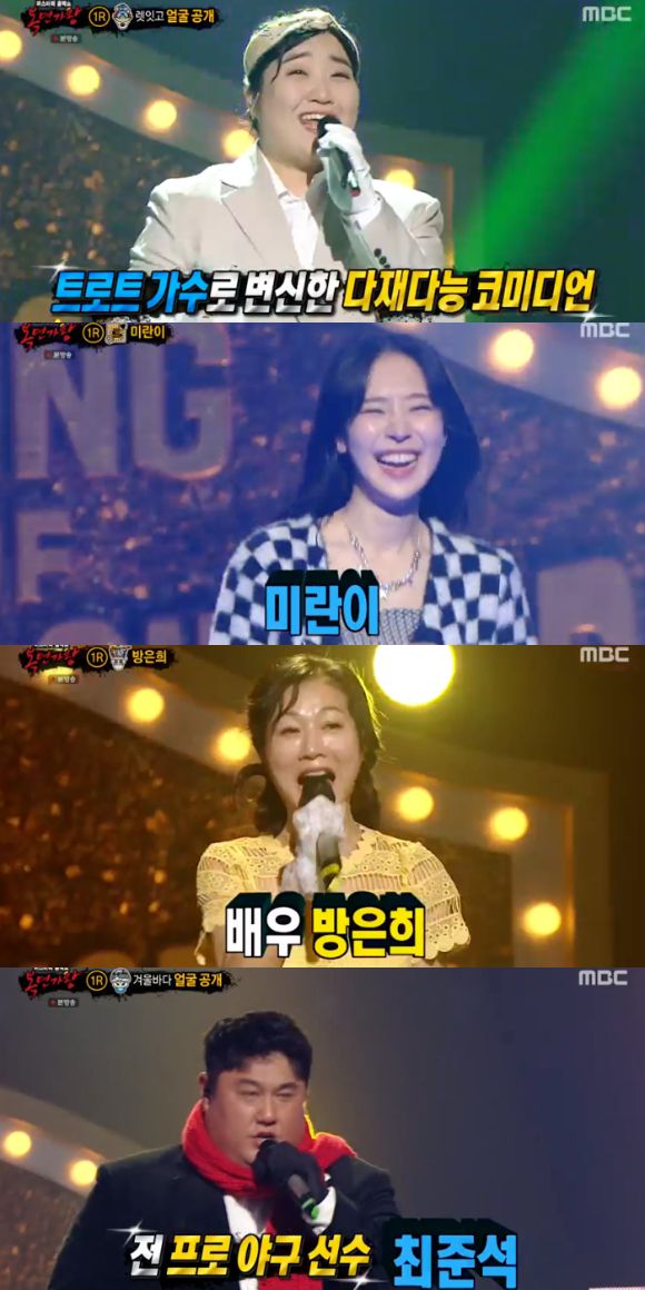 [조이뉴스24 이미영 기자] '복면가왕'에 래퍼 미란이와 배우 방은희, 코미디언 출신 트로트 가수 김명선, 전 야구선수 최준석이 반전 정체를 공개했다.
