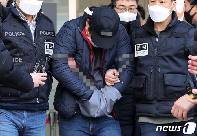 (서울=뉴스1) 박세연 기자 = 헤어진 여자친구의 가족에게 흉기를 휘둘러 어머니를 살해한 20대 남성이 구속 전 피의자 심문(구속영장 실질심사)을 마치고 지난 12일 오후 송파구 서울동부지법을 나서고 있다. 2021.12.12/뉴스1 |