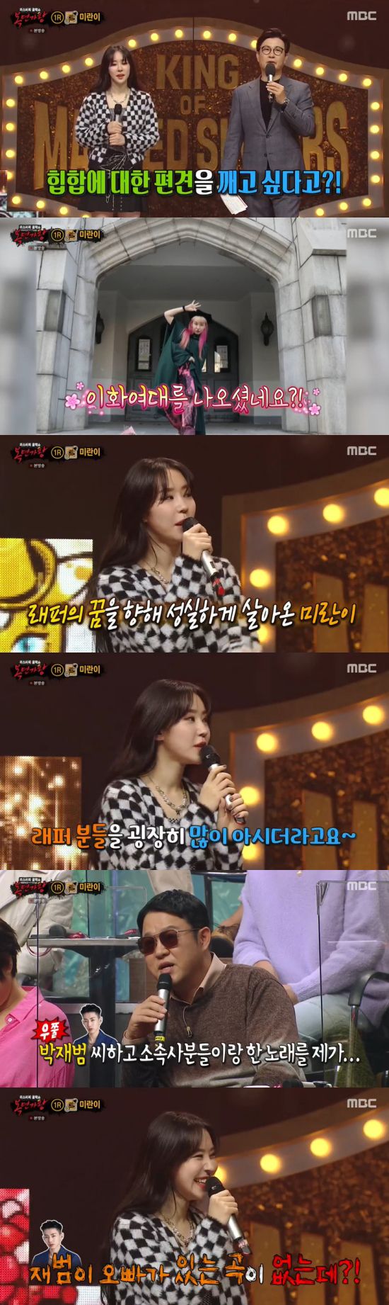 특히 김성주는 "힙합에 대한 편견을 깨주고 싶었다더라"라며 질문했고, 미란이는 "래퍼라는 직업이 날라리 같고 너무 많이 놀 거 같고 이런데 제가 대학교를 나왔다. '할 일이 없어서 할 직업이 없어서 래퍼를 하는 게 아니라 이 사람이 계획을 짜고 나서 래퍼를 했구나'라고 이해해 주셔서 편견을 많이 깨려고 노력 중이다"라며 못박았다.