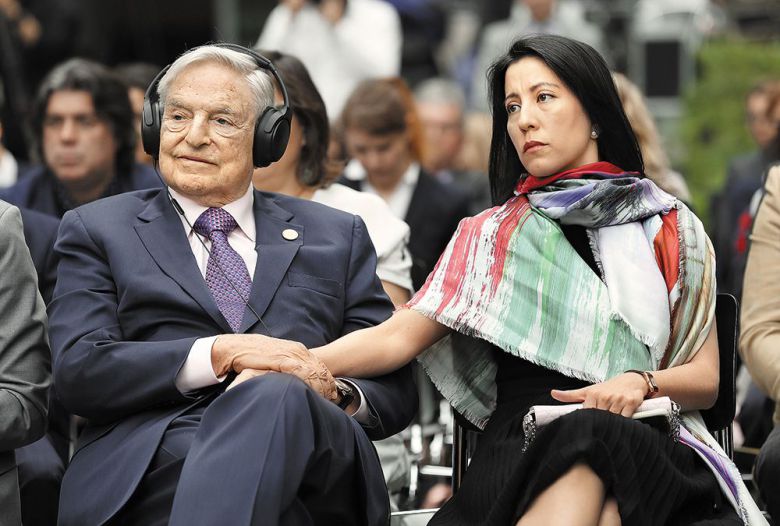 조지 소로스는 2013년 41세 연하의 부인 타미코 볼턴(오른쪽)과의 결혼으로도 화제를 모았다. 사진은 2017년 6월 독일 베를린에서, 그의 ‘열린 사회 기금’ 협력으로 세워진 ‘유러피언 로마 예술문화 연구소’(ERIAC) 개소식에 참석한 소로스 부부. /게티이미지코리아 |