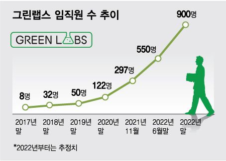 직원들의 건강을 챙기는 노력에 힘입어 그린랩스의 임직원 수는 2017년 말 8명에서 2018년 32명, 2019년 50명, 지난해 122명, 올해 11월 기준 297명으로 급증했다. 내년 말까지는 900명까지 대폭 확대한다는 목표다.