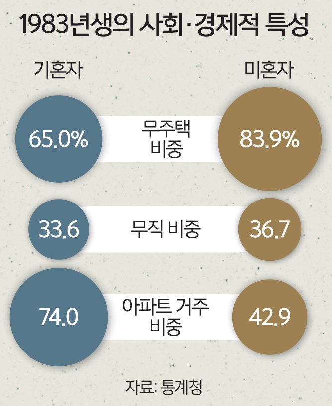◆1983년생 3명 중 1명은 무직… 10명 중 7명은 무주택