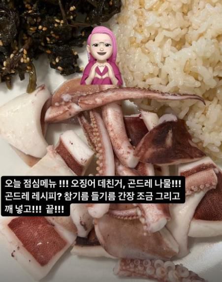 장윤주는 16일 자신의 SNS에 "오늘 점심 메뉴. 오징어 데친 것, 곤드레나물. 곤드레 레시피? 참기름, 들기름, 간장 조금 그리고 깨 넣고 끝"이라는 글과 함께 사진 한 장을 게재했다.
