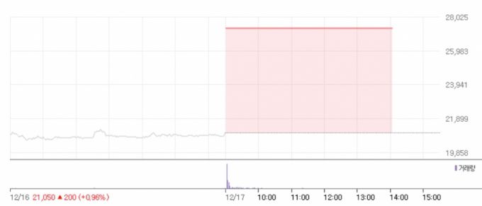 개장과 동시에 29.99% 상한가에 도달한 SNK 주가는 2만7350원. 상한대 가격인 2만7350원 매물대에 여전히 987만주 가량이 쌓여있다.