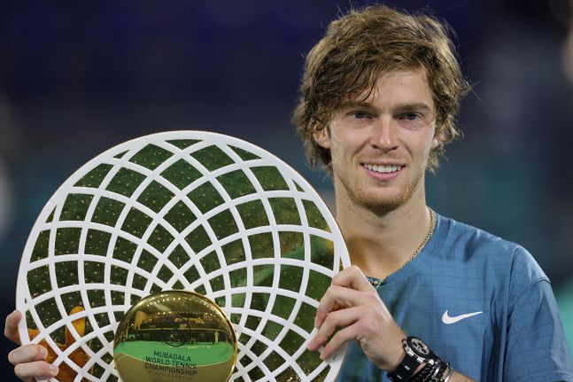 연말 특급 이벤트대회인 2021 무바달라 월드테니스 챔피언십 남자단식에서 우승한 안드레이 루블레프. 아부다비|연합뉴스 |