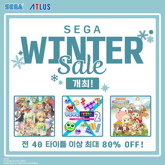 세가는 28일까지 닌텐도 e숍에서 판매 중인 닌텐도 스위치 타이틀을 특별 가격으로 판매하는 '윈터 세일'을 개최한다. 이를 통해 '뿌요뿌요 테트리스2' '투 포인트 호스피탈: 점보 에디션' '룬 팩토리4 스페셜' '목장이야기 다시 만난 미네랄 친구들' 등 40여개 작품에 최대 80% 할인 혜택을 적용한다.